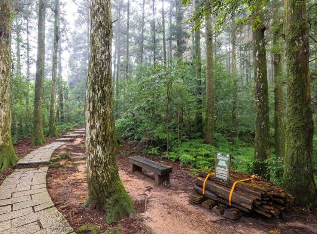 - 0-1.5公里: 路況較好,寬闊泥土碎石路,緩下坡。兩旁是高聳柳杉林。