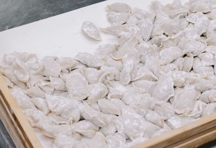地址: 在熟食區邊緣,靠近通往乾貨區的通道旁,一個小攤位,桌上擺滿包好的水餃餛飩。