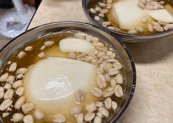 • 介紹: 吃完鹹的,當然要來點甜的平衡一下!福記是市場裡的老牌豆花攤。豆花是 傳統鹽鹵豆花,口感介於 綿密與滑嫩 之間,帶點微微的焦香氣(古早味的那種),豆香味十足。糖水是 熬煮的蔗糖水,甜而不膩。配料選擇不少,我最愛 粉圓(很Q)和 花生(煮得軟綿)。夏天來一碗冰涼的豆花,超級消暑解膩。