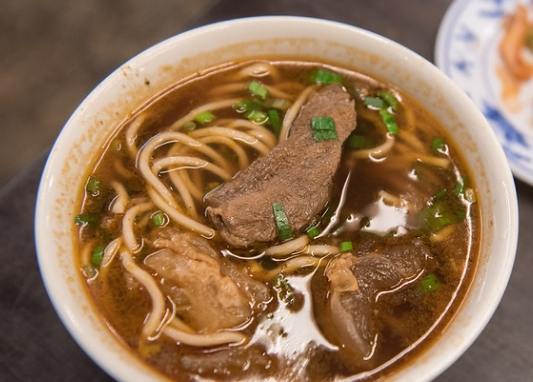 • 介紹: 市場周邊的老字號店面。招牌是 紅燒牛肉麵,湯頭屬於 濃鬱醇厚 型,帶點微微的中藥香氣但不搶戲,喝得出是長時間熬煮的。牛肉給得 大方,用的是 牛腱肉,燉得 軟爛入味 卻不會散開,筋的部分帶點膠質感,好吃。麵條是 粗的手工麵,頗有嚼勁。嗜辣者記得加點它們 自製的牛油辣渣,香辣過癮!