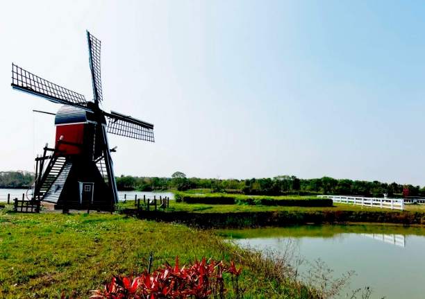 • 📸 壯觀荷蘭風車群: 這絕對是地標中的地標!好幾座色彩鮮豔、造型經典的風車(當然是景觀用途,非真用來研磨穀物),沿著埤塘邊矗立。配上平靜的水面倒影,怎麼拍都像明信片。最佳拍攝點我覺得有兩個: